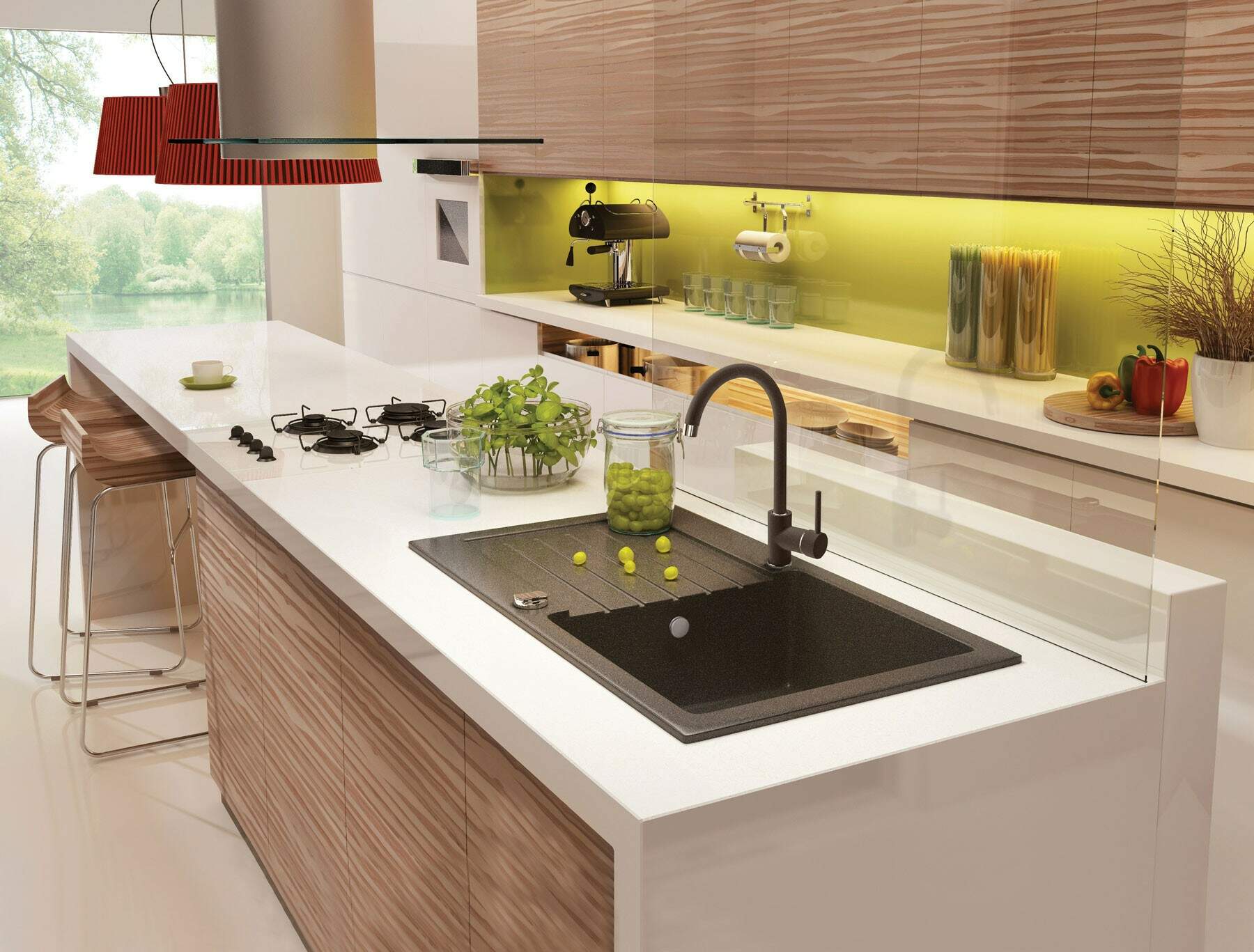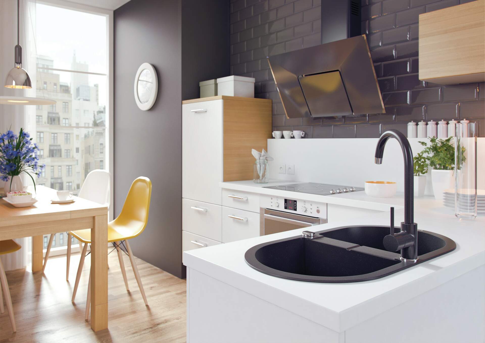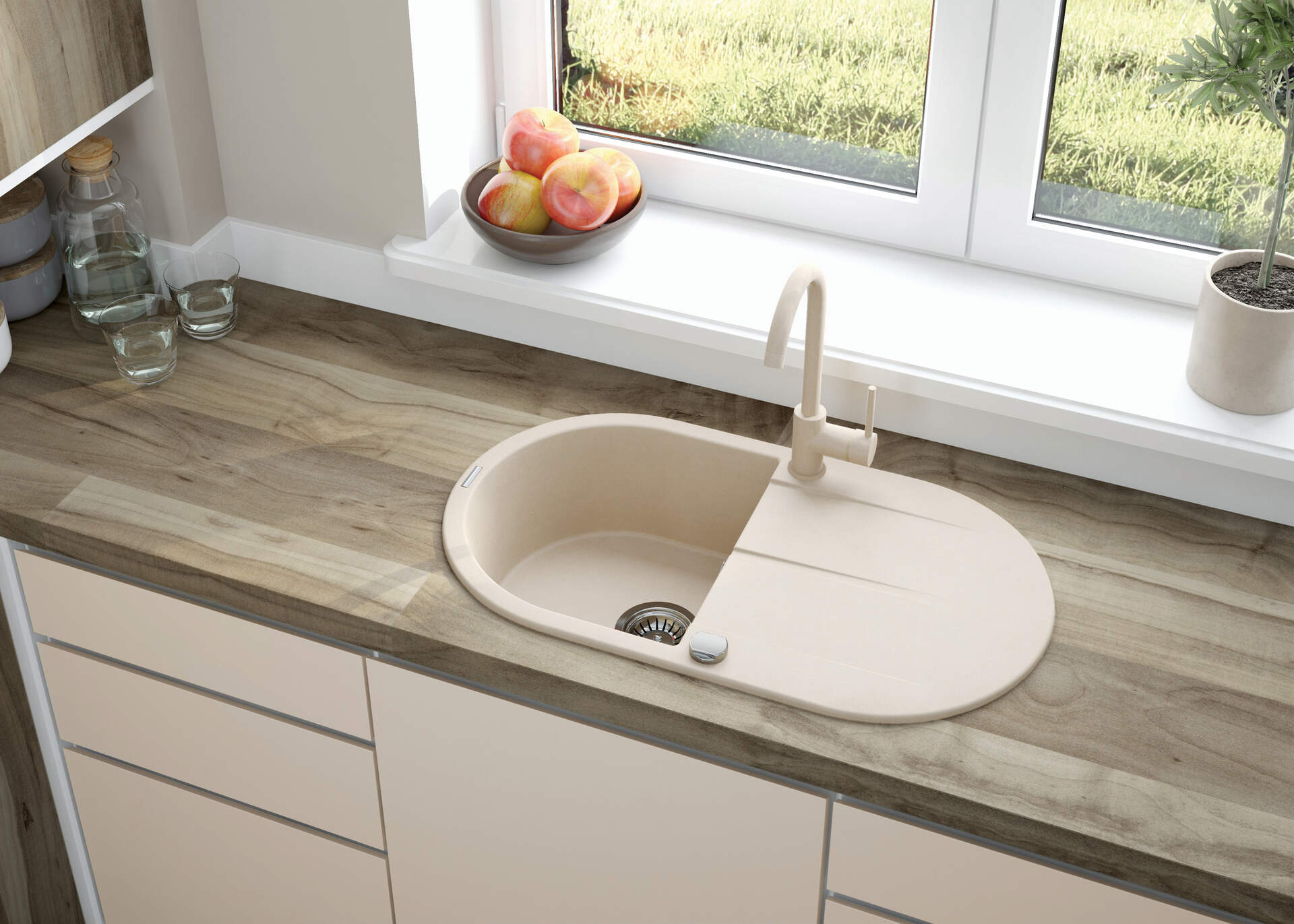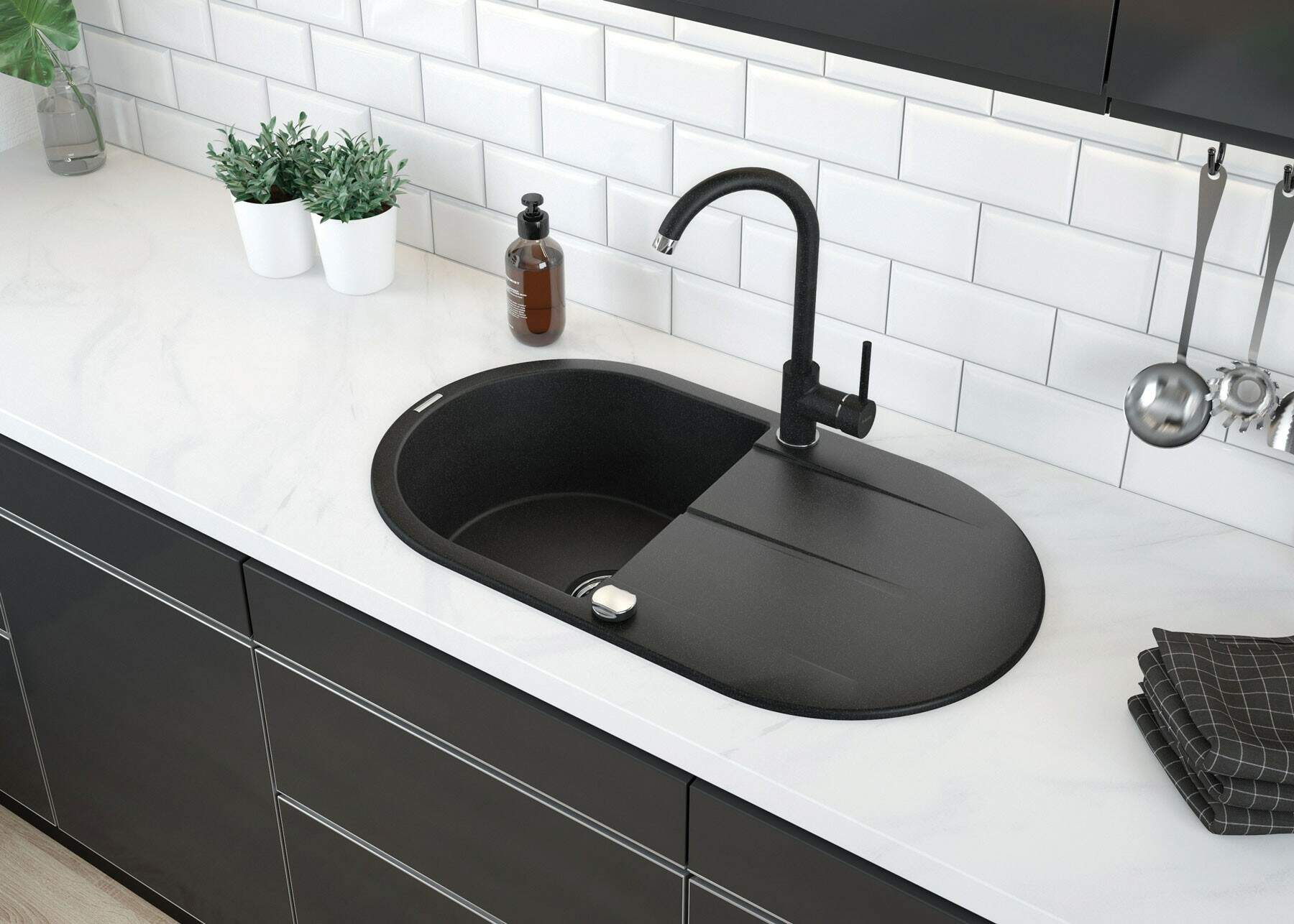 Funkcjonalna bateria kuchenna zaprojektowana została z myślą o wysokiej użyteczności oraz estetycznym wyglądzie. Elegancki design sprawia, że pasuje do wnętrz nowoczesnych, ale też skandynawskich czy bardziej tradycyjnych. Bateria zlewozmywakowa posiada aerator, który redukuje życie wody, co przy ręcznym myciu naczyń jest bardzo istotne. Dodatkowo napowietrzony strumień jest bardziej miękki.