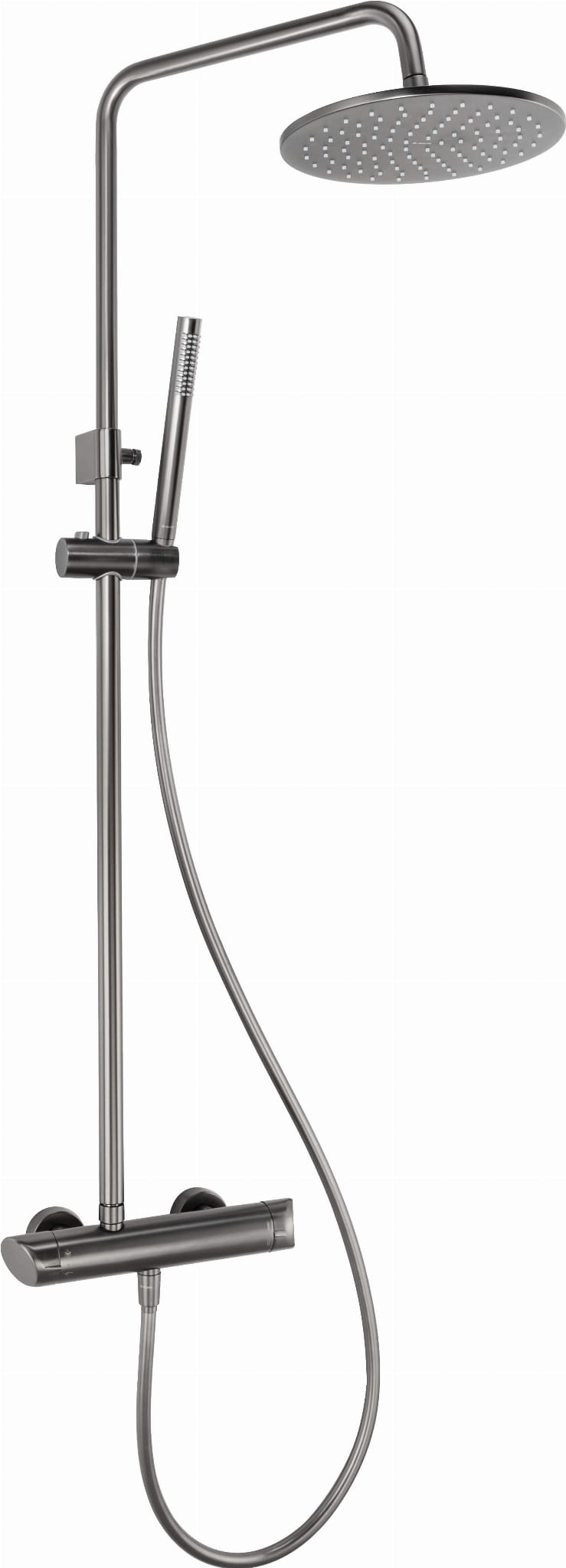 Funkcjonalna deszczownica pozwala na swobodne ruchy pod prysznicem, gdyż nie musisz trzymać w ręku słuchawki. Klasyczne kształty i nowoczesne wykończenie sprawiają, że pięknie wygląda w łazienkach industrialnych, skandynawskich, ale także w bardziej tradycyjnych wnętrzach. Trwała i wytrzymała powłoka jest odporna na odpryski i szok termiczny. Deszczownicę łatwo także utrzymać w nieskazitelnej czystości za sprawą systemu Anti-Calc. Osad kamienny z wody wykruszysz z silikonowych dysz jednym ruchem dłoni. W komplecie znajduje się także bateria prysznicowa. Za każdym razem możesz wybrać źródło wypływu wody i dobrać je do aktualnych potrzeb. Bateria jest elegancko wykończona i spójna z pozostałą częścią kolekcji oraz samą deszczownicą.