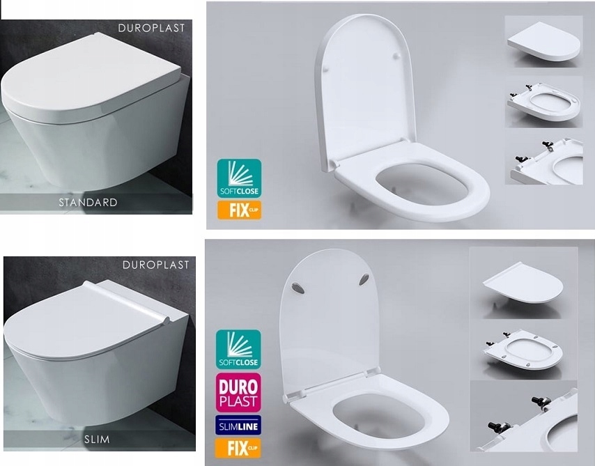 - Deska wolnoopadająca z duroplastu, posiadająca metalowe zawiasy z funkcją szybkiego wypięcia do wyboru standard bądź slim ( cienka )