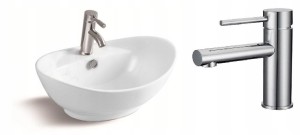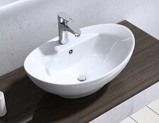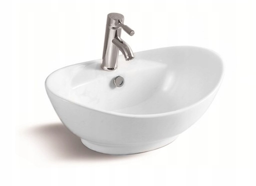 Zestaw umywalka nablatowa ceramiczna z otworem na baterię + elegancka bateria umywalkowa z perlatorem.
