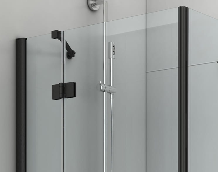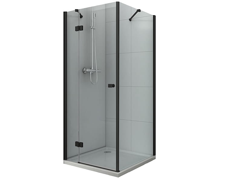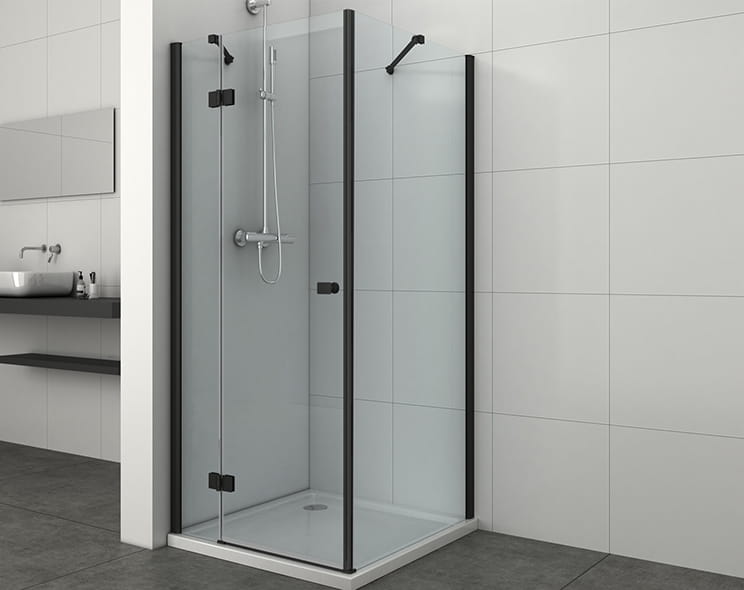 Kabina wykonana z bezpiecznego 8mm szkła hartowanego z powłoką Easy Clean w bezbarwnym kolorze profile: aluminiowe w kolorze czarny mat.