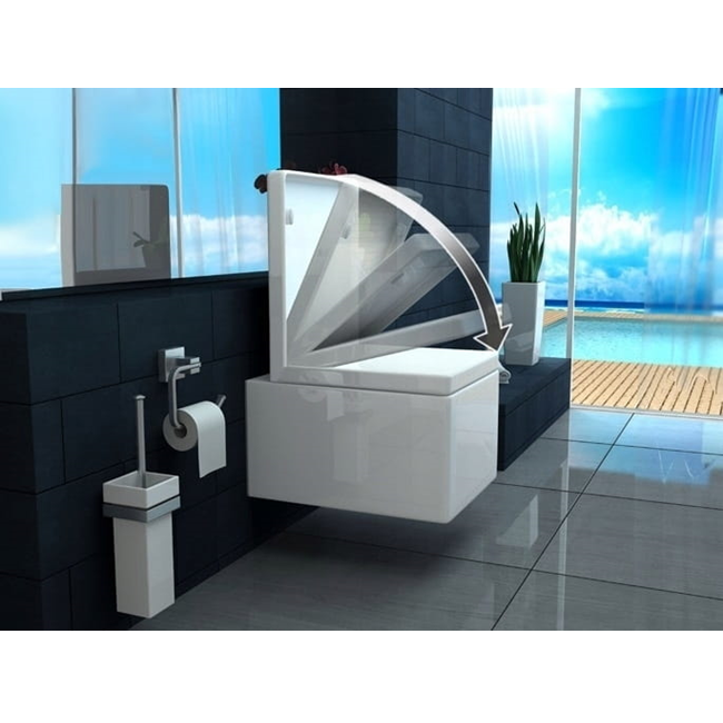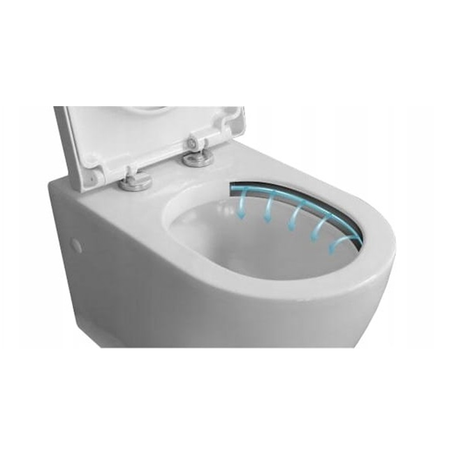 - Deska wolnoopadająca z duroplastu, posiadająca metalowe zawiasy z funkcją szybkiego wypięcia.