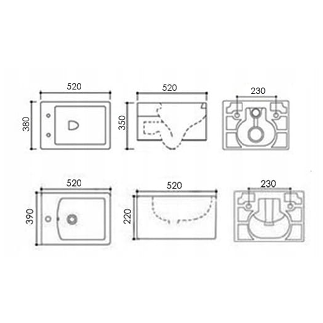 - Wymiary bidetu: 52 x 39 x 22 cm
