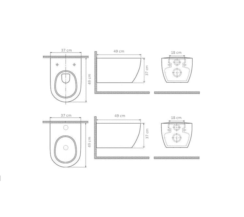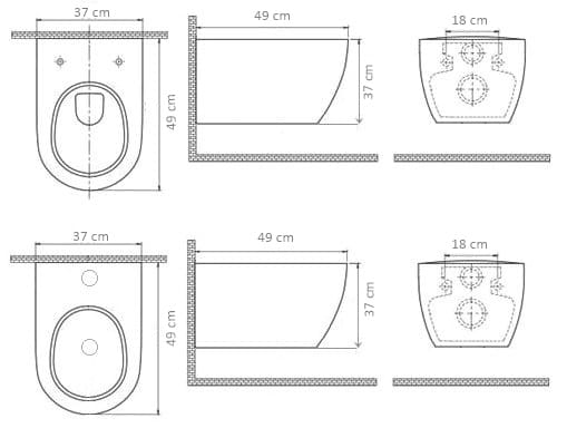 - Wymiary bidetu: 37 x 49 cm