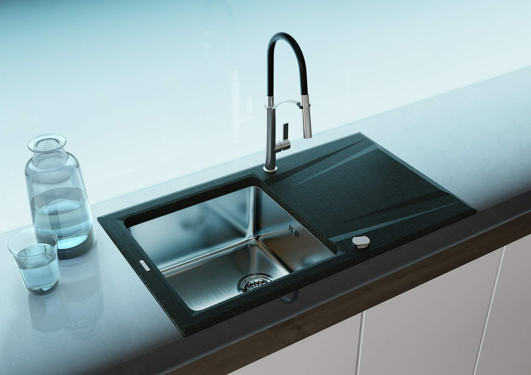 Zlewozmywak granitowo-stalowy to innowacyjne połączenie dwóch materiałów i kolorów. Elegancki ociekacz z granitu kontrastuje z pojemną komorą ze stali nierdzewnej. Całość jest jednak bardzo uniwersalna i z łatwością wpasuje się w nowoczesne wnętrza w stylu industrialnym lub skandynawskim. Praktyczny, 1-komorowy zlewozmywak z ociekaczem to doskonałe rozwiązanie w małych kuchniach i kawalerkach z aneksem. Pełni jednocześnie funkcję suszarki, profilowana powierzchnia sprawnie odprowadza wodę spływającą z naczyń lub umytej żywności.