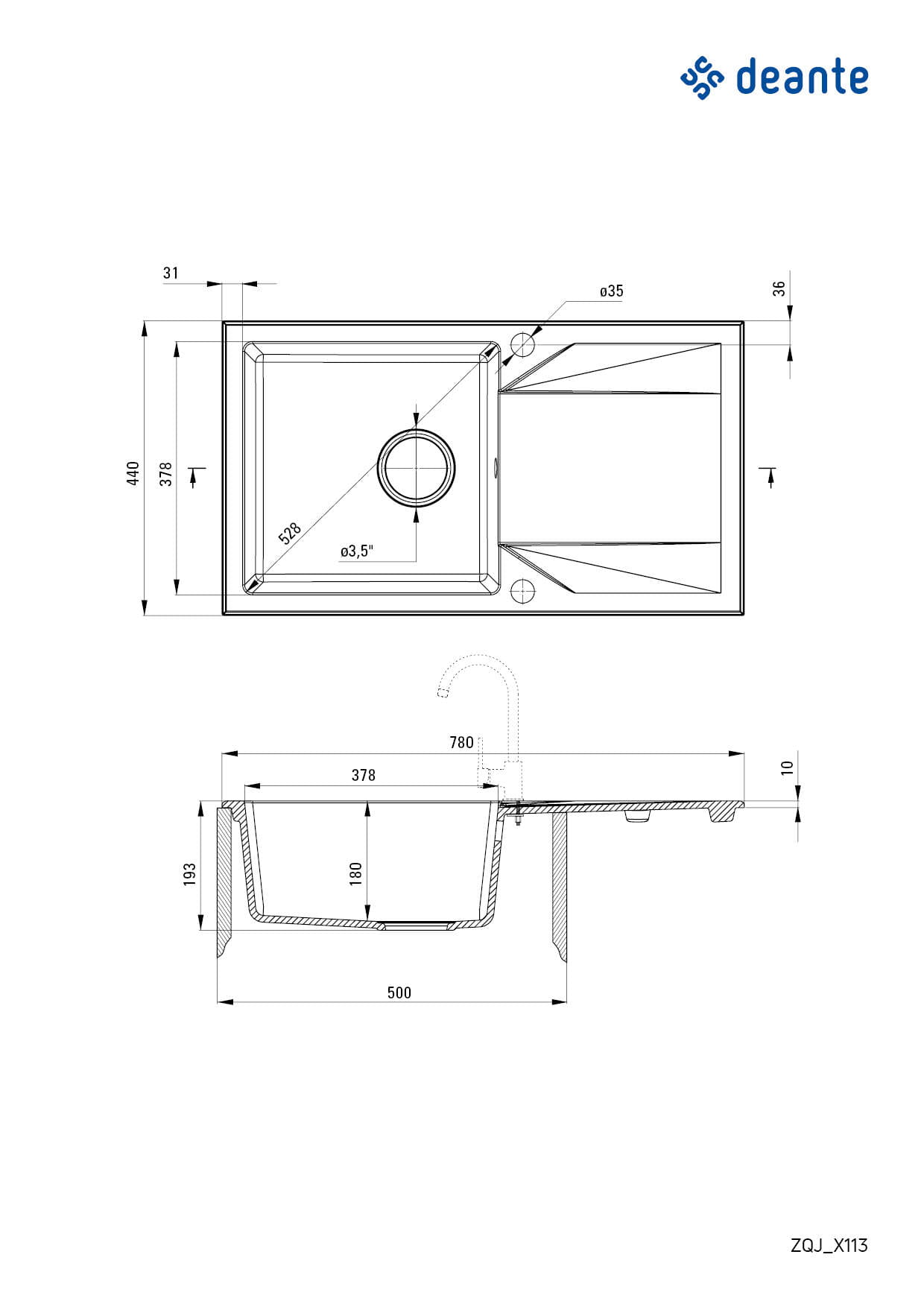 - Średnica odpływu: 3.5''
