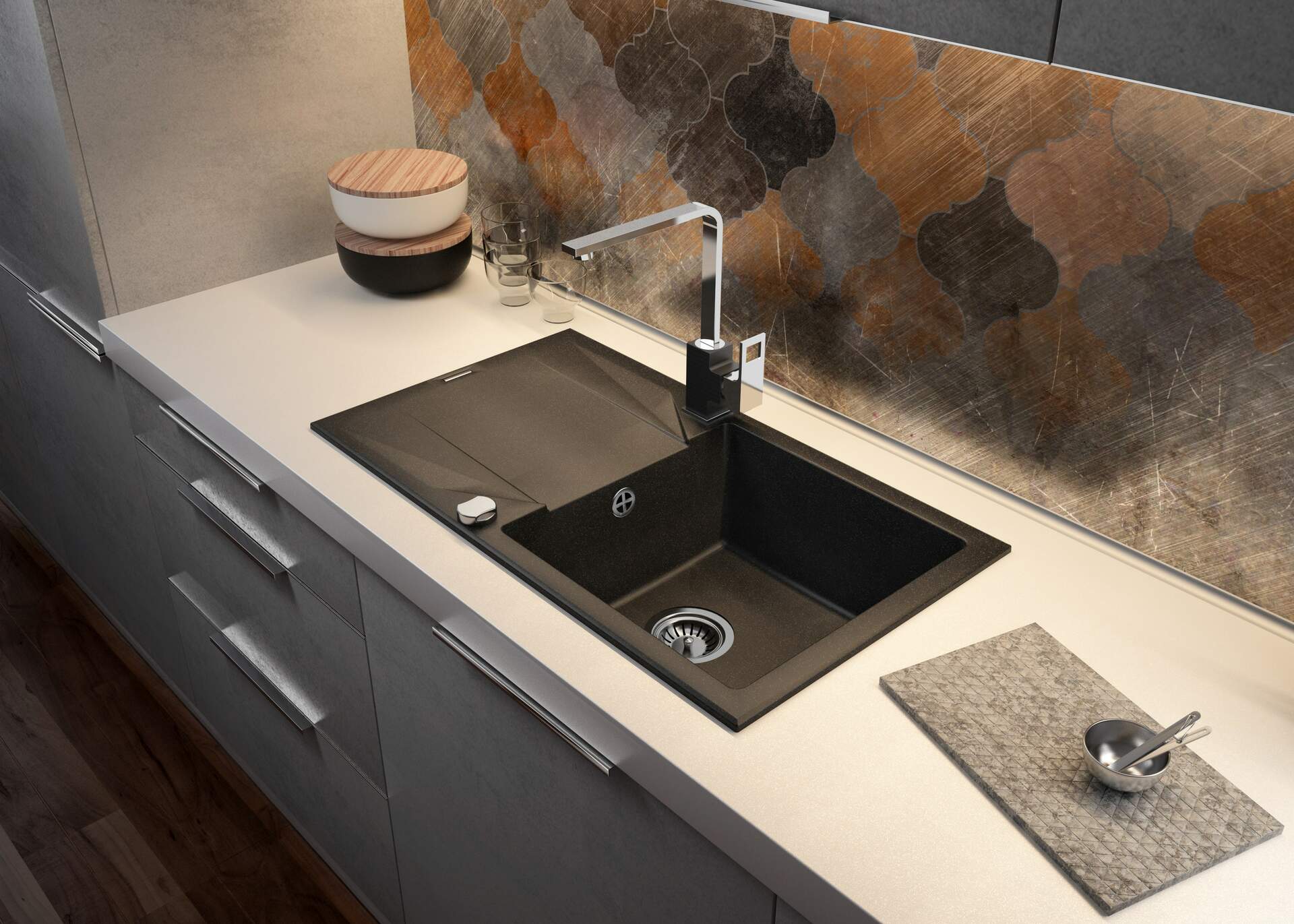 Zlewozmywak granitowy 1-komorowy z ociekaczem