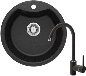 Zlewozmywak granitowy z baterią tworzy kompletny zestaw do kuchni. Powstał z wytrzymałego, naturalnego granitu, który jest odporny nie tylko na wysoką temperaturę i jej wahania, ale także na uderzenia i przebarwienia, zgodnie z normą europejską PN-EN 13310. Ponadto został wzbogacony warstwą hydrofobową, ułatwiającą spływanie pojedynczych kropel. W tej samej kolorystyce jest też bateria z wygodną wylewką. Zgrabny, 1-komorowy zlewozmywak to doskonałe rozwiązanie w małych kuchniach i kawalerkach z aneksem.